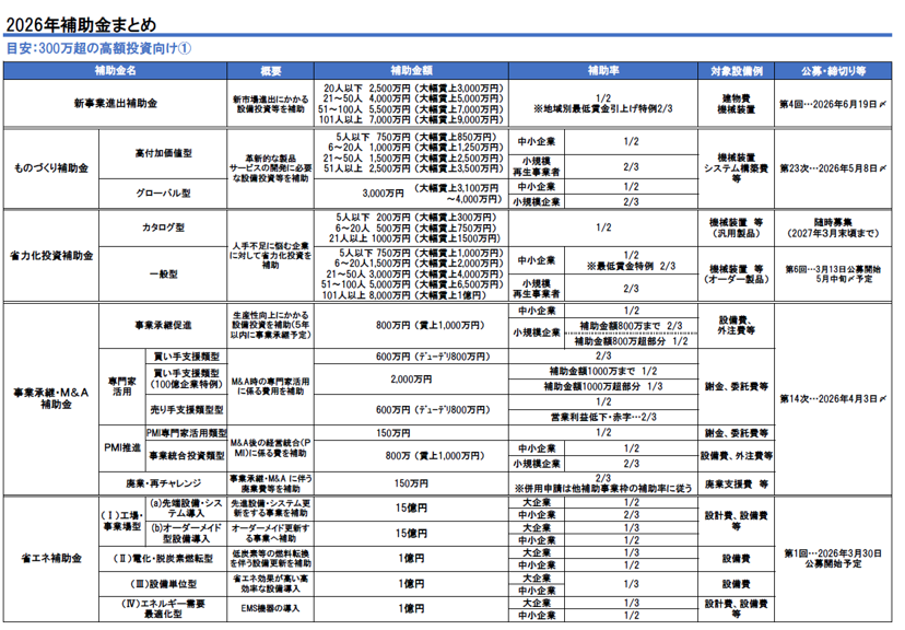 2026年の補助金情報をまとめています。参考にしてください。